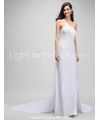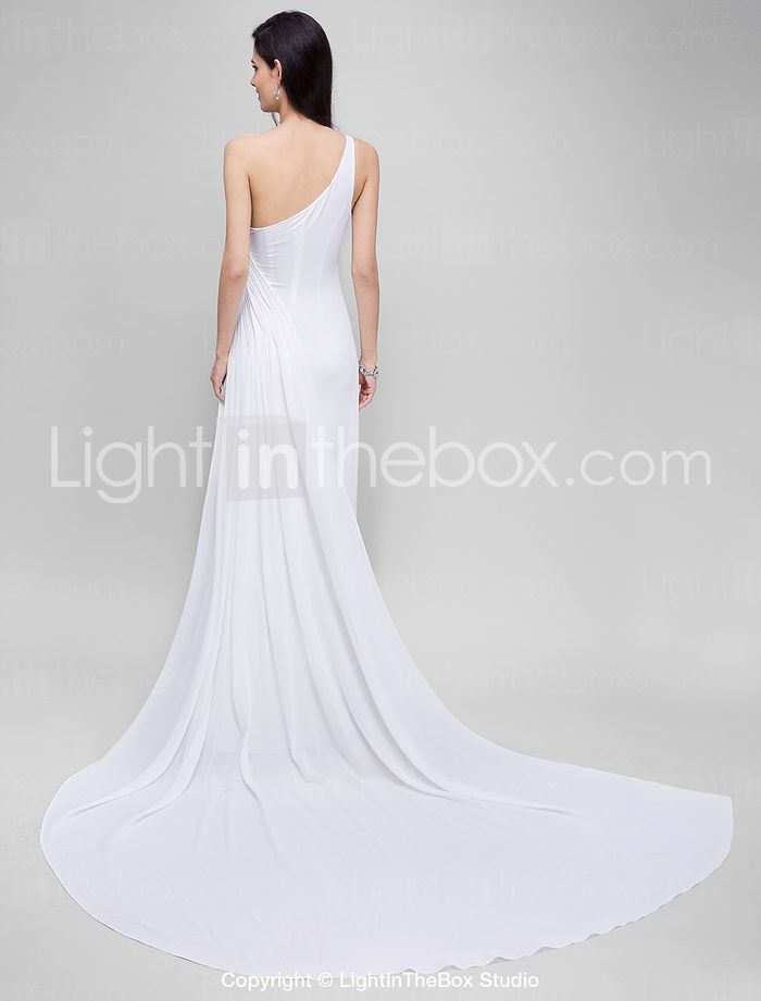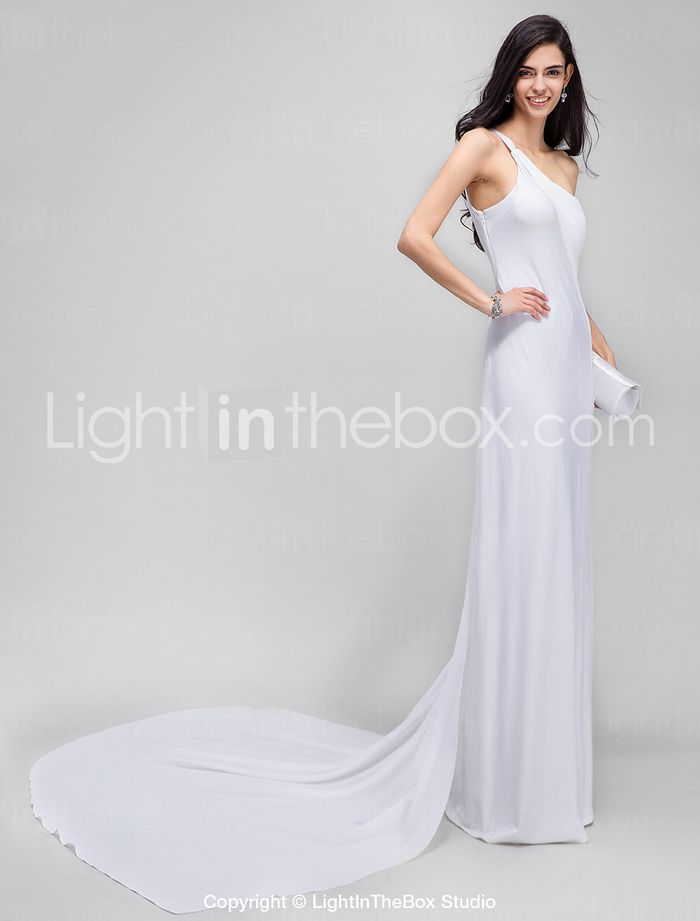 Formal Evening Dress Sheath / Column One Shoulder Watteau Train Jersey with