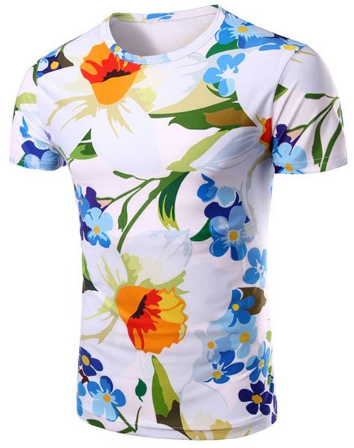 Round Neck Floral 3D Print Pattern Short Sleeve Men's T-Shirt